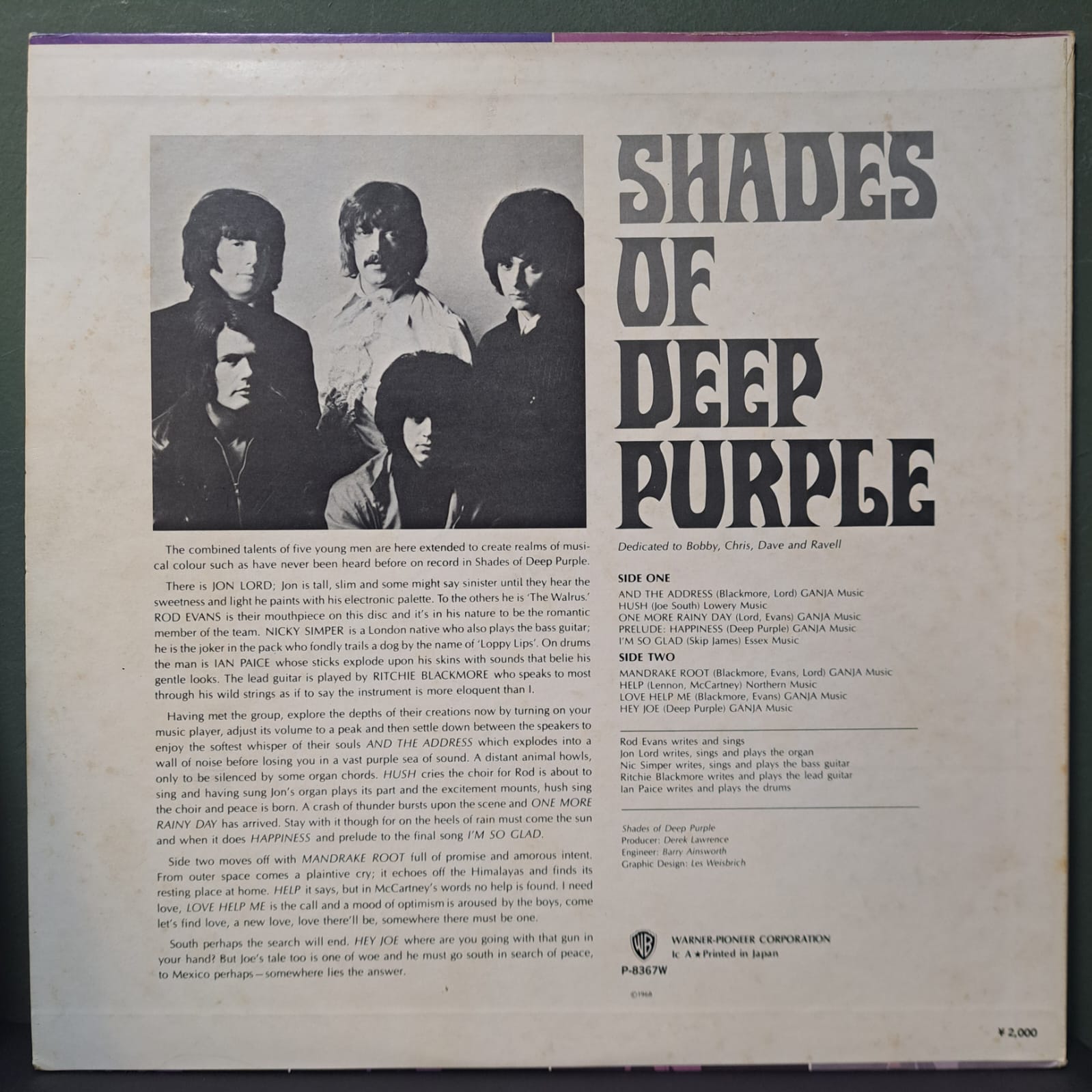 | A4(a) | Prelude: HappinessWritten-By – Ian Paice, Jon Lord, Nic Simper*, Ritchie Blackmore, Rod Evans | |