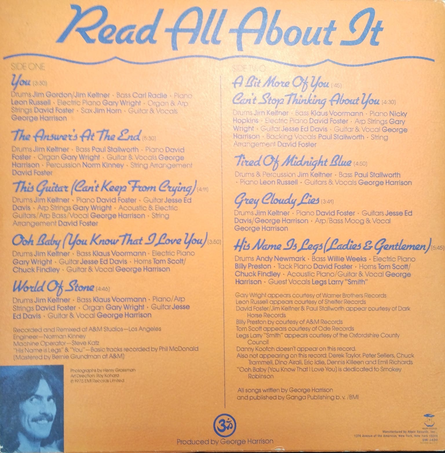 | A4 | Ooh Baby (You Know That I Love You)Bass – Klaus VoormannDrums – Jim KeltnerElectric Piano – Gary WrightGuitar – Jesse Ed DavisGuitar, Vocals – George HarrisonHorns – Chuck Findley, Tom Scott | 3:50 | |