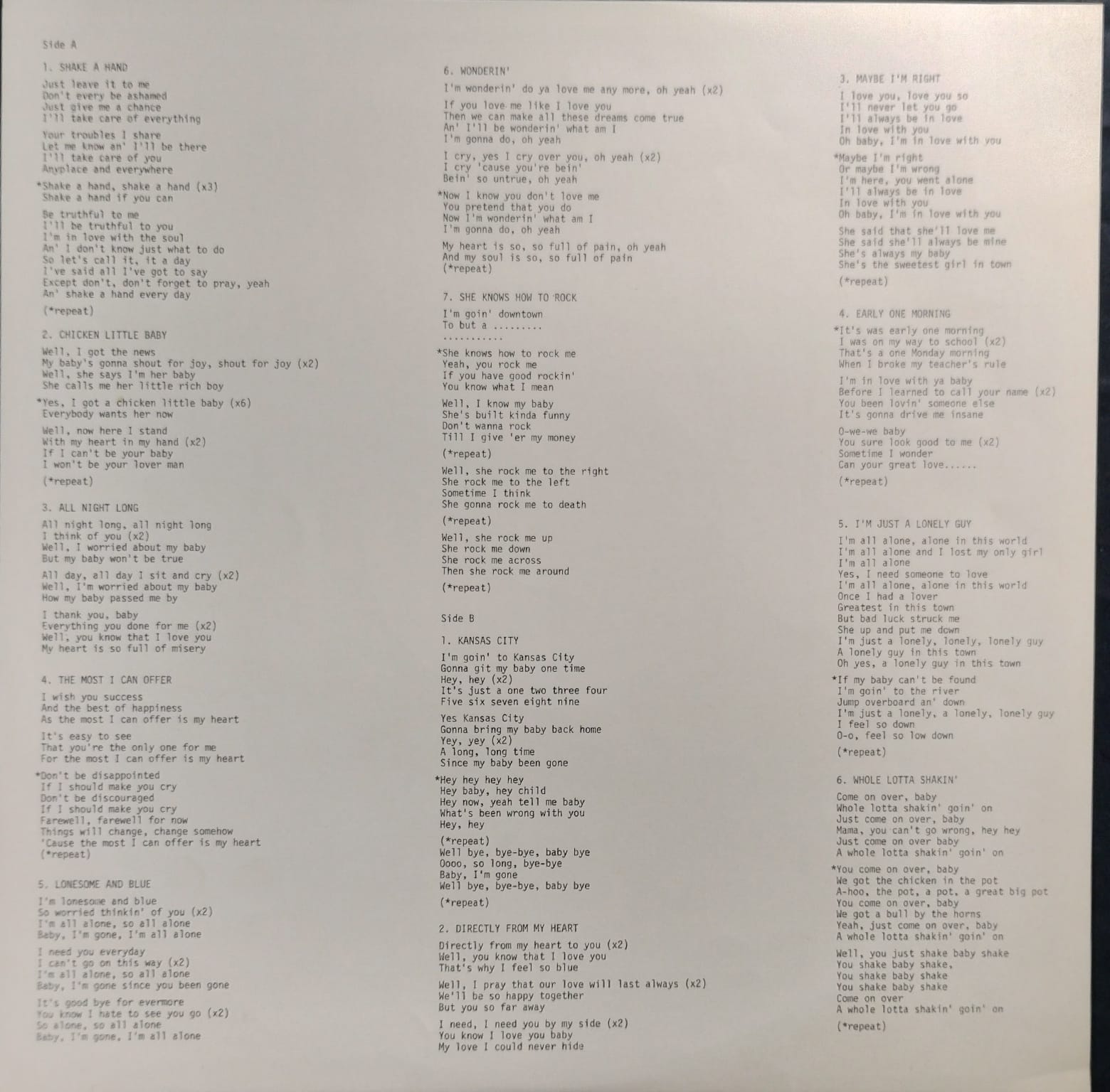 | B6 | Whole Lotta Shakin' Goin On |