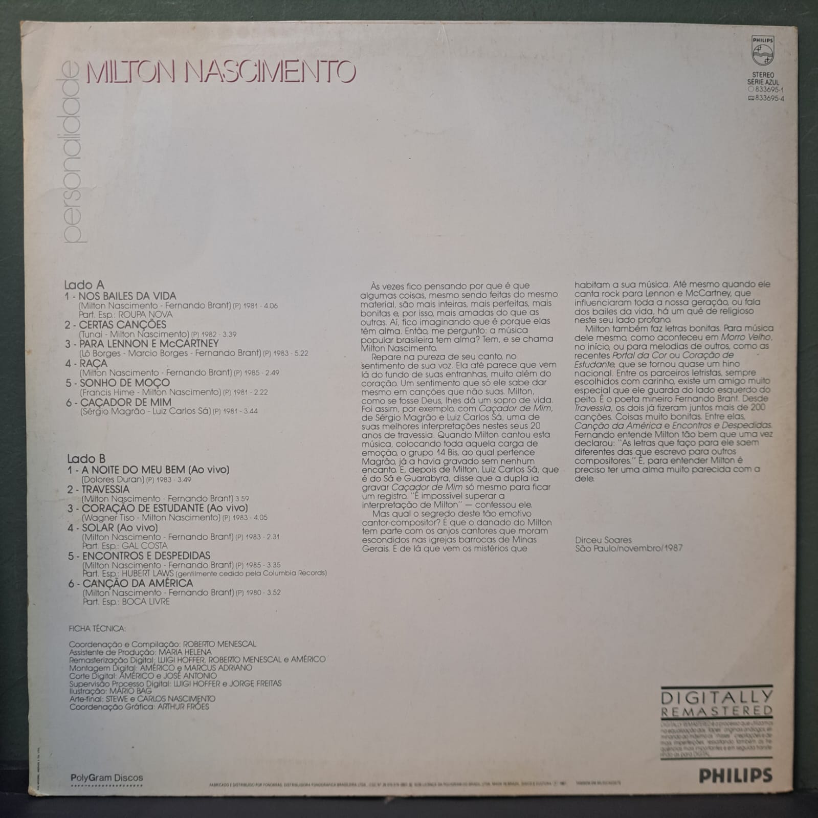 | B6 | Canção Da AméricaFeaturing – Boca Livre | 3:52 |