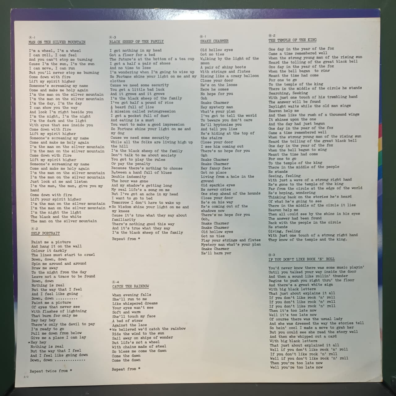 | A1 | Man On The Silver Mountain | |