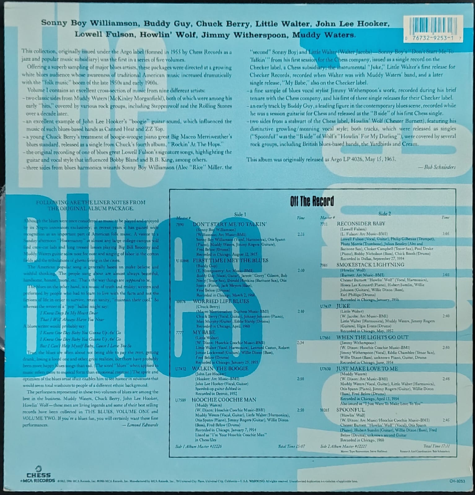 | A3 | Chuck Berry– | Worried Life Blues | 2:09 |